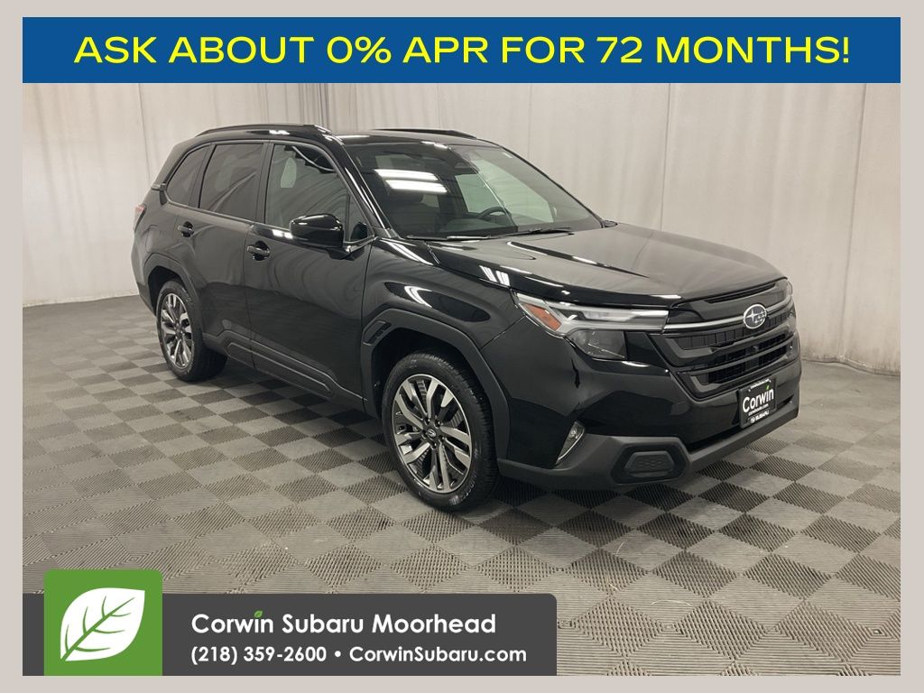 Crystal Black Silica 2026 Subaru Forester 4D Sport Utility Touring 2.5L 4-Cylinder DOHC 16V Lineartronic CVT AWD 25/32 City/Highway MPG