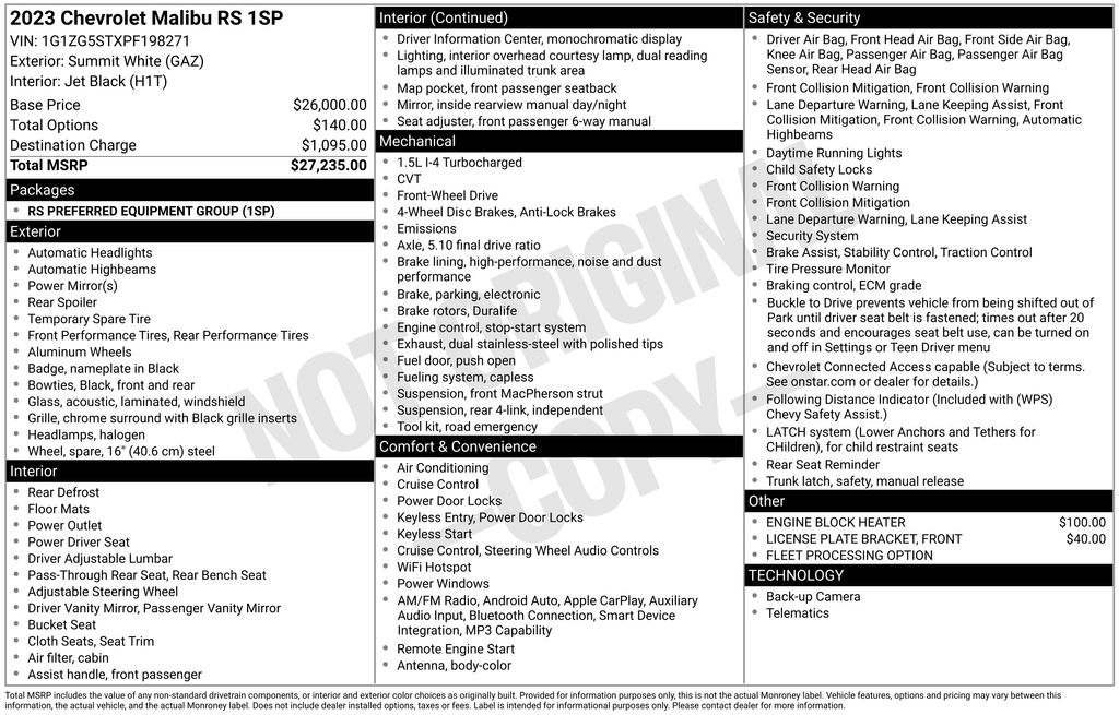 Elevate your driving experience with the 2023 Chevrolet Malibu RS. This exceptional sedan offers a winning combination of style, technology, and performance that is sure to impress. Visit our showroom today and let us demonstrate how the Malibu RS can enhance your daily commute and weekend adventures.