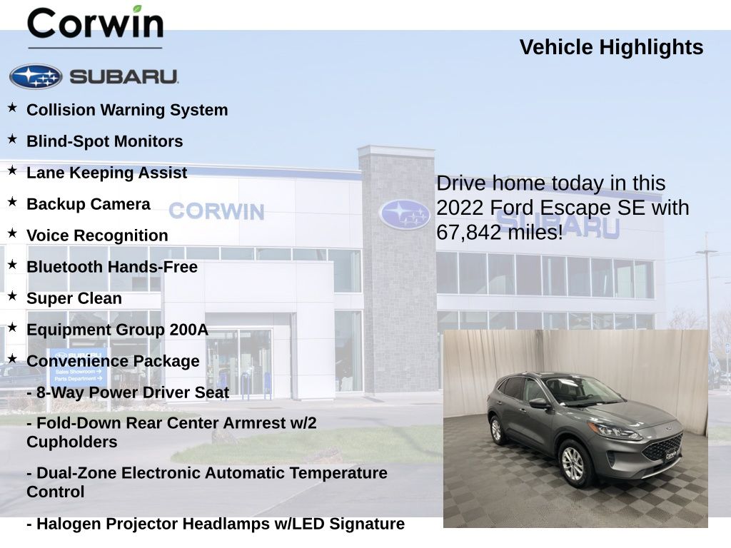 This 2022 Ford Escape SE is a well-equipped and versatile SUV that offers an exceptional driving experience and a host of advanced features to enhance your daily commute and weekend adventures. With its sleek gray exterior, this Escape boasts a refined and modern aesthetic that is sure to turn heads.