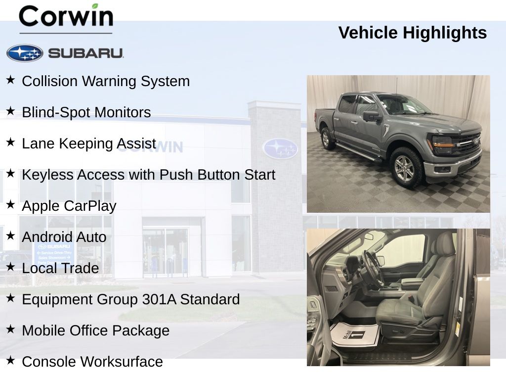 Backed by Ford's renowned reputation for quality and reliability, this 2024 F-150 XLT is a true workhorse that delivers exceptional performance, versatility, and value. Whether you're a contractor, small business owner, or simply someone who demands the best from their truck, this F-150 is the perfect choice. Experience the difference for yourselfâ"schedule a test drive today and see how this remarkable vehicle can transform the way you work and play.