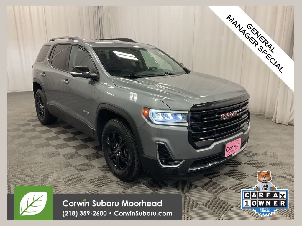 Elevate your driving experience with this exceptional 2022 GMC Acadia AT4. Boasting a sleek Satin Steel Metallic exterior and a luxurious Jet Black leather-appointed interior, this versatile SUV is ready to take on any adventure.