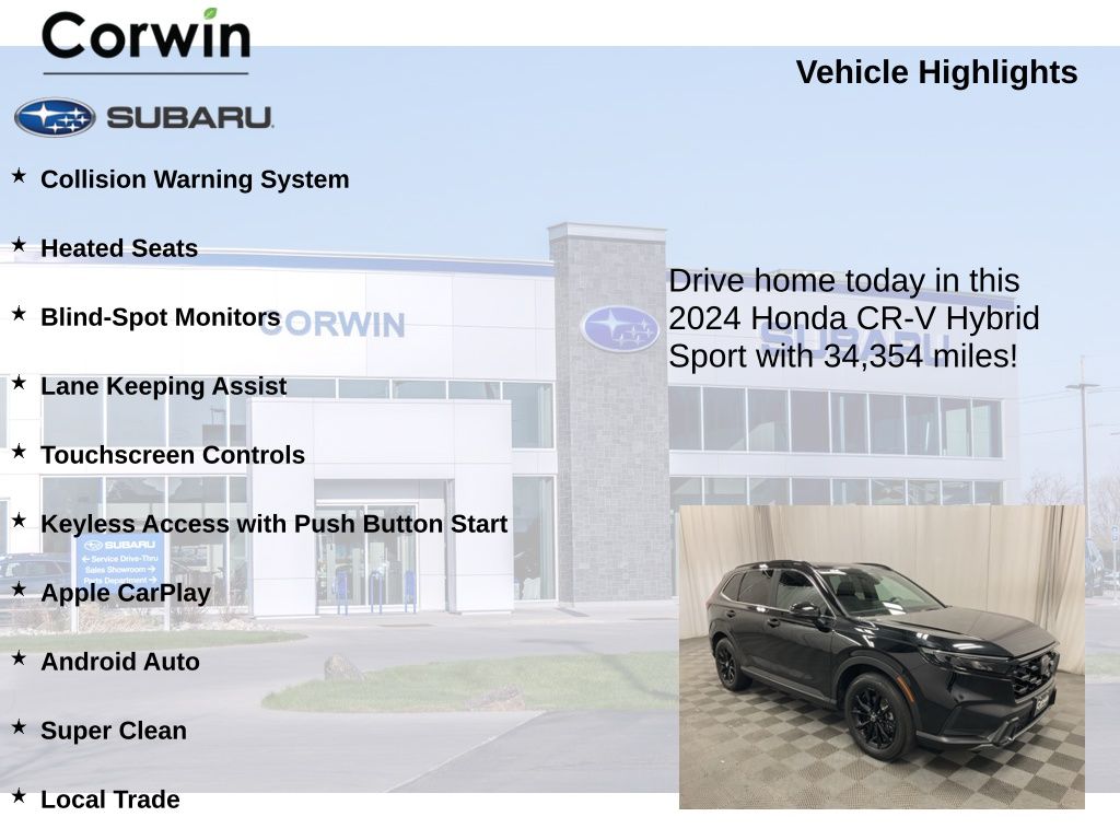 Discover the perfect blend of style, efficiency, and technology in the 2024 Honda CR-V Hybrid Sport. With its impressive performance, comprehensive safety features, and exceptional attention to detail, this SUV is poised to exceed your expectations. We invite you to schedule a test drive and experience the difference for yourself. Let us help you find the perfect vehicle to elevate your driving experience.