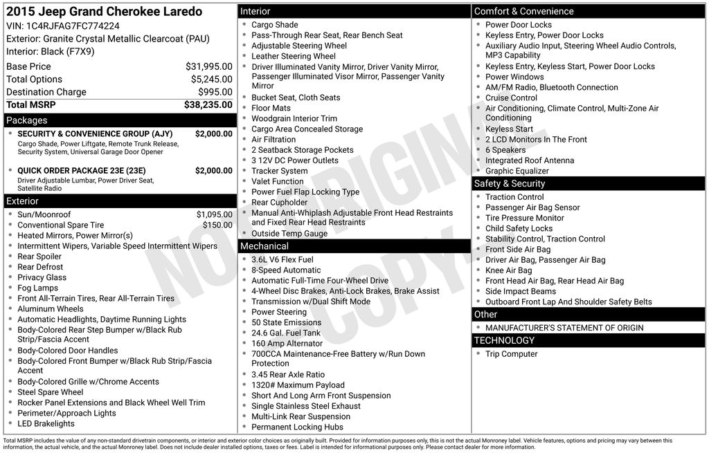 This 2015 Jeep Grand Cherokee Laredo is a true standout in its class, offering a compelling blend of capability, comfort, and technology. With its low mileage and well-maintained condition, this SUV represents an exceptional value proposition. We invite you to experience the difference for yourself and schedule a test drive at our showroom. Let us demonstrate how this Jeep Grand Cherokee Laredo can elevate your driving experience and exceed your expectations.