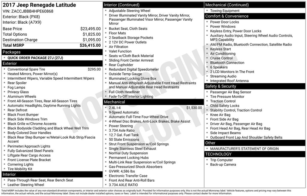 This well-equipped Jeep Renegade comes with an impressive array of features, including: