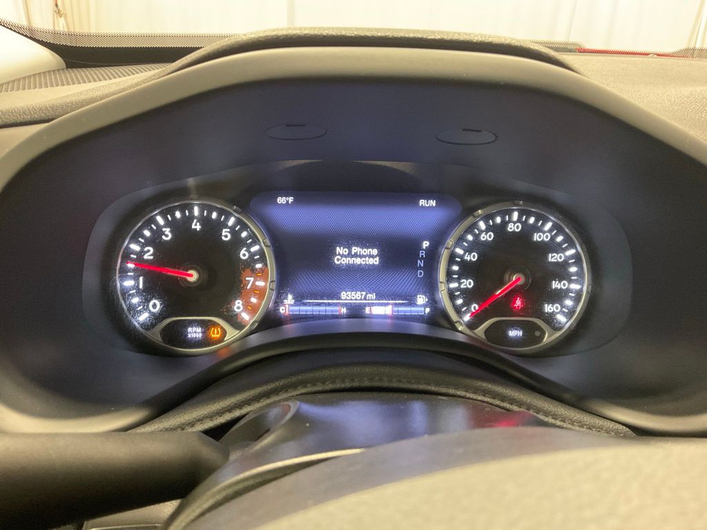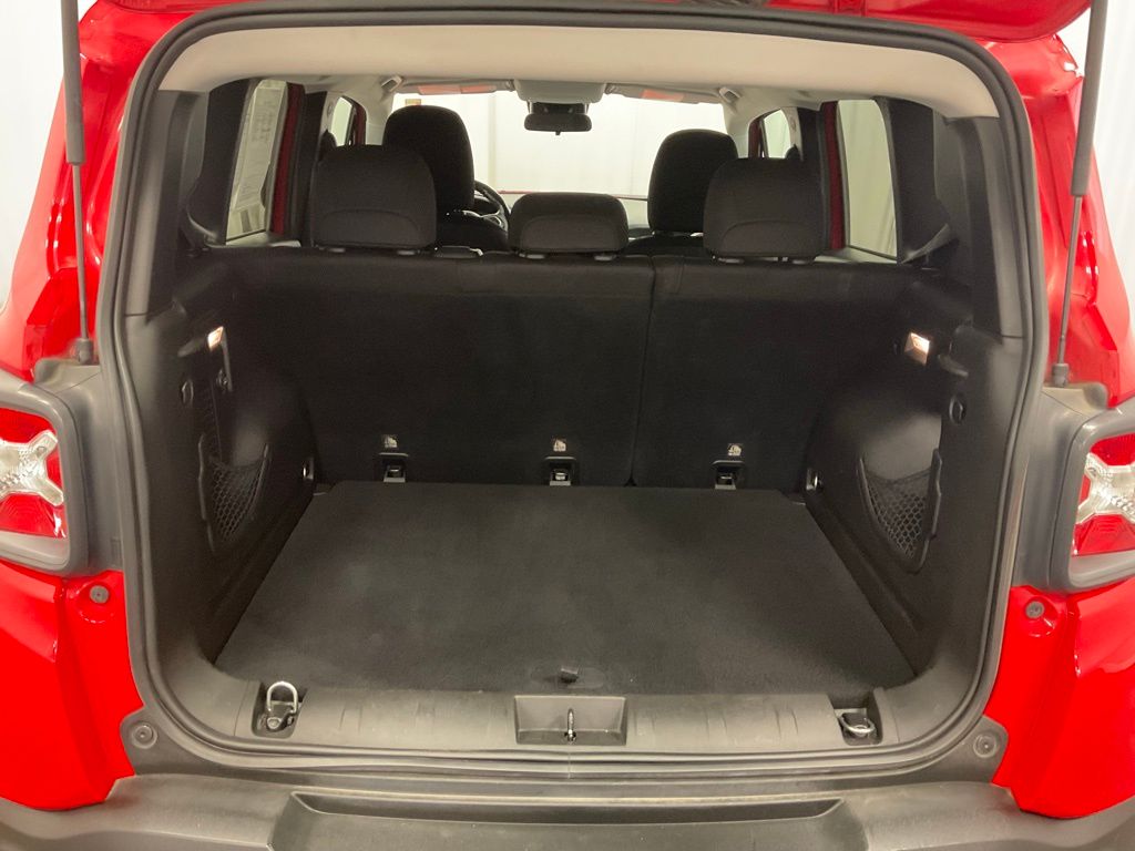 The Renegade Trailhawk's impressive features don't stop there. It also boasts a sleek, distinctive exterior in a bold Red color, complemented by 17" Aluminum Wheels and a Roof Rack. Inside, you'll find premium Cloth Low-Back Bucket Seats, a Leather-Wrapped Steering Wheel, and a 115V Auxiliary Power Outlet for all your on-the-go needs.