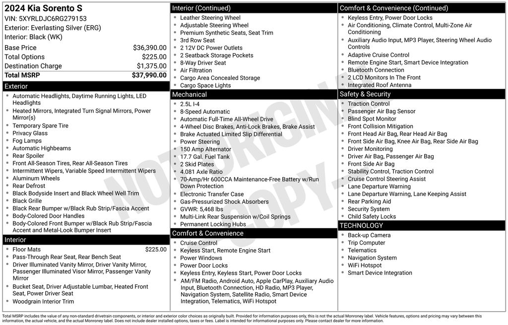 This well-equipped Sorento S comes with an impressive array of features, including: