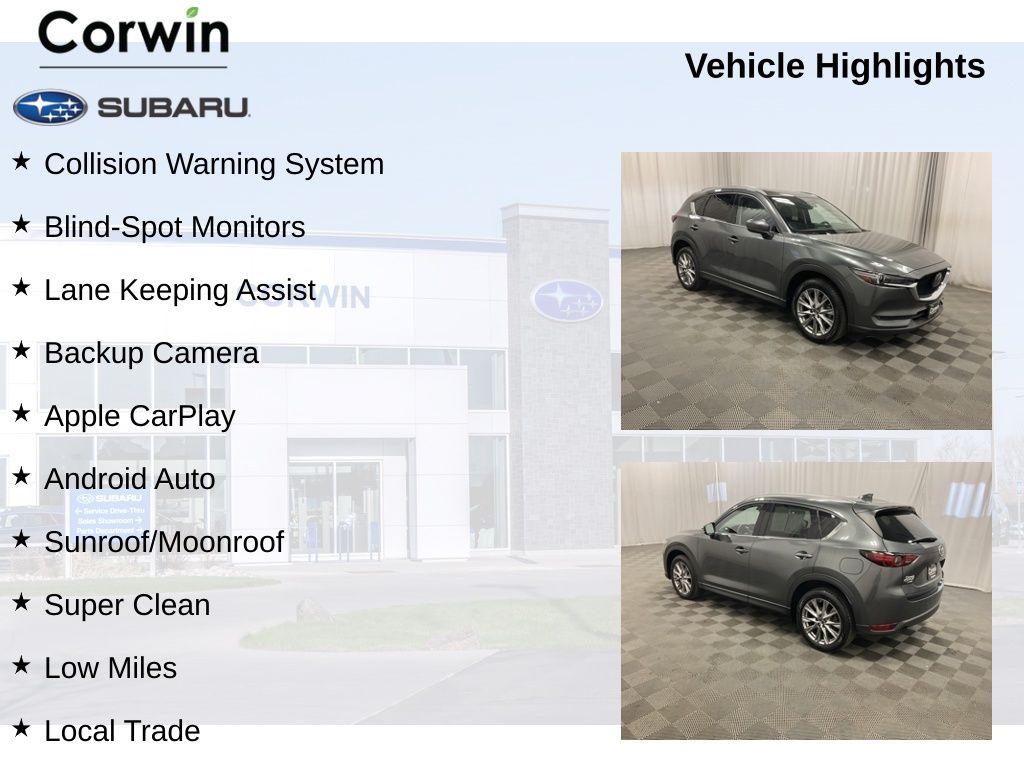 Priced below KBB Fair Purchase Price! The NEW Corwin Subaru! Same great location, same great staff, best selection! Come see what the Corwin Subaru Family Driven experience is all about! 2019 Machine Gray Metallic Mazda CX-5 Grand Touring Reserve