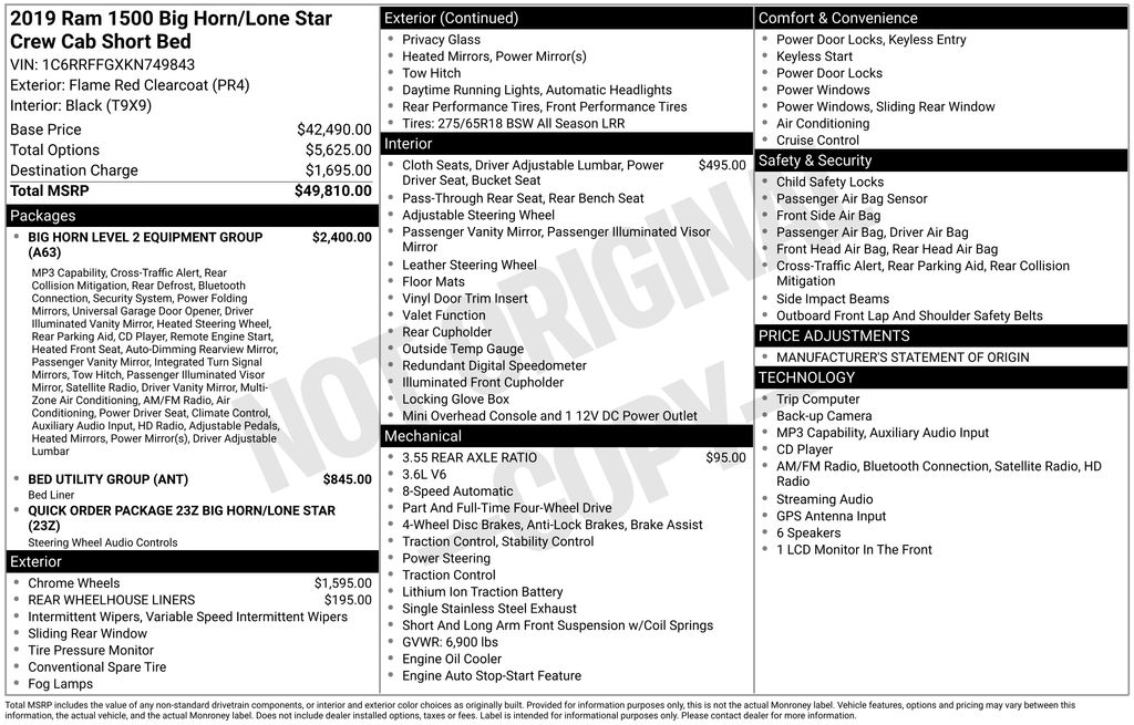 Whether you're hauling heavy loads, navigating off-road adventures, or simply enjoying a comfortable and connected driving experience, this 2019 Ram 1500 Big Horn/Lone Star is ready to exceed your expectations. Experience the power, versatility, and premium features that make this truck a true leader in the full-size pickup segment.