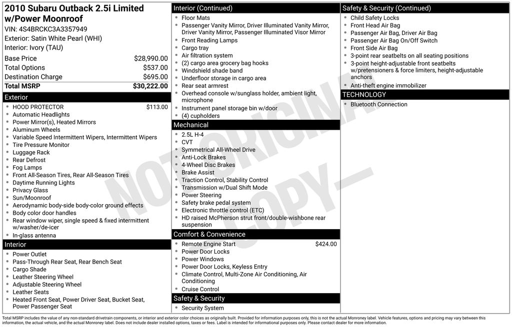 Whether you're tackling the daily commute or embarking on an adventure, this 2010 Subaru Outback 2.5i Limited is the perfect companion. Experience the perfect blend of capability, comfort, and style â" visit our showroom today and let us demonstrate why this Outback should be your next vehicle.