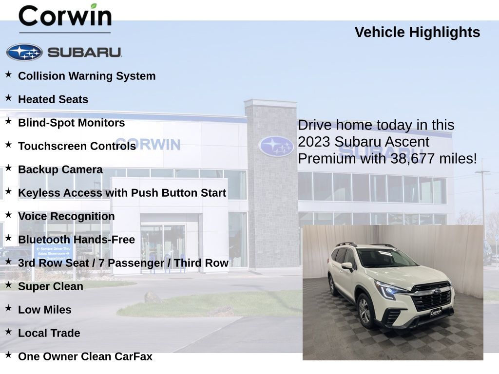 Don't miss the opportunity to make this Ascent Premium your own. Schedule a test drive today and discover the difference that this exceptional vehicle can make in your life.