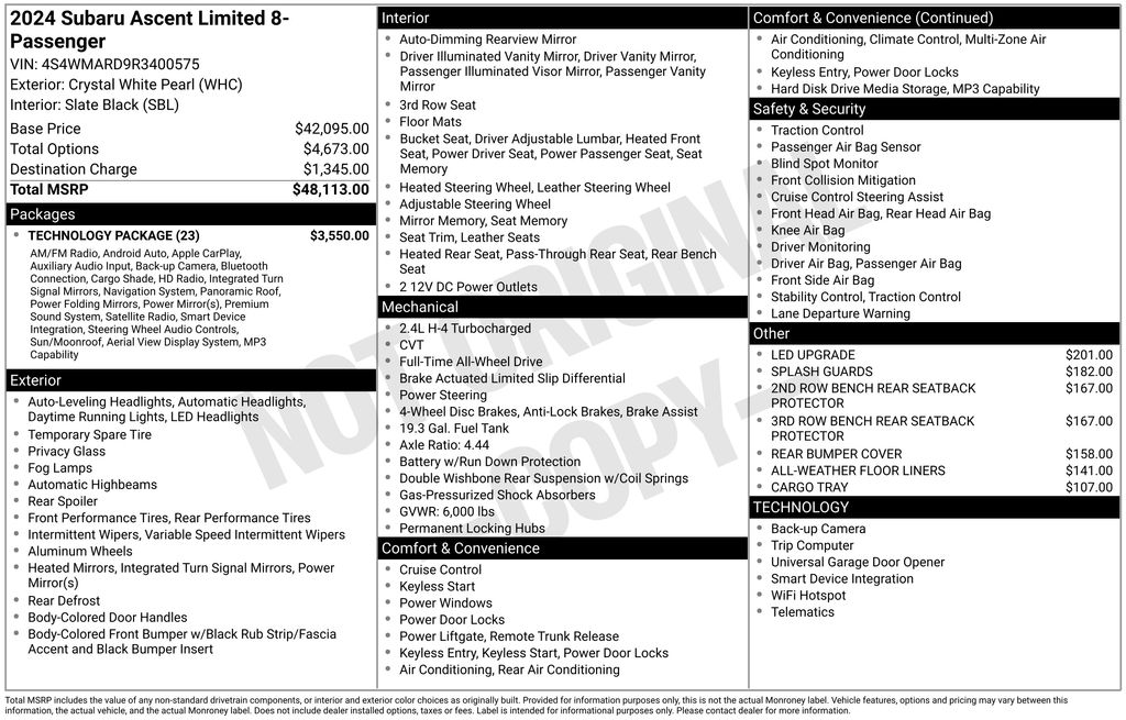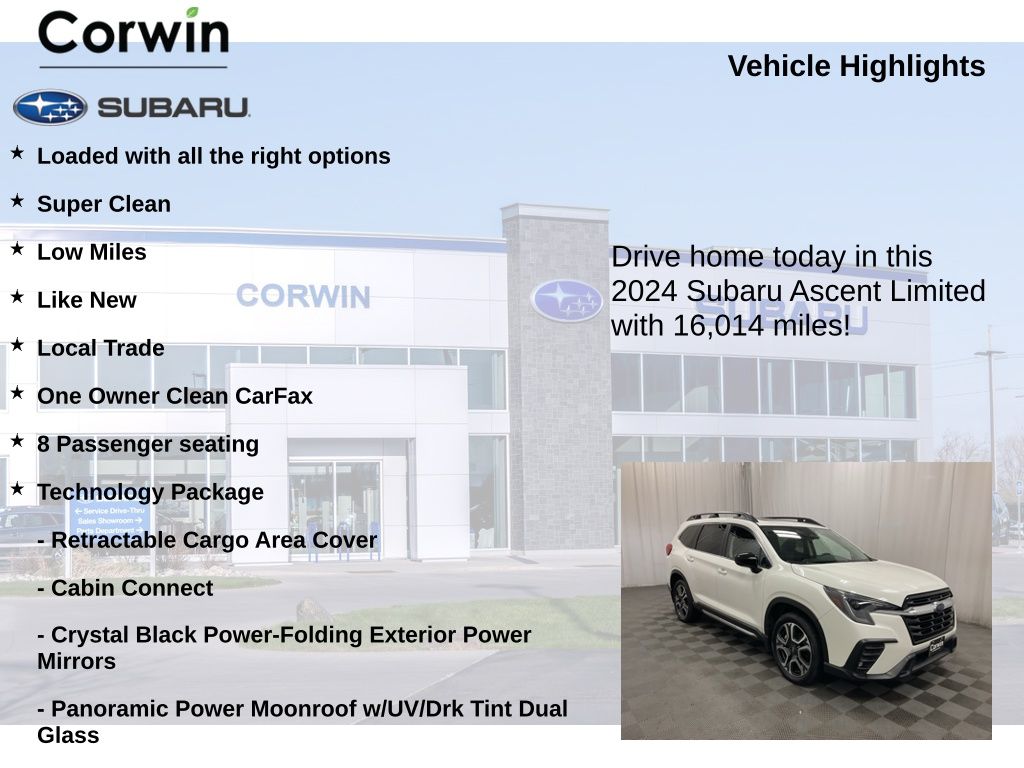 Experience the epitome of versatility and sophistication with this 2024 Subaru Ascent Limited. This exceptional SUV combines sleek design, advanced technology, and uncompromising performance to elevate your driving experience.