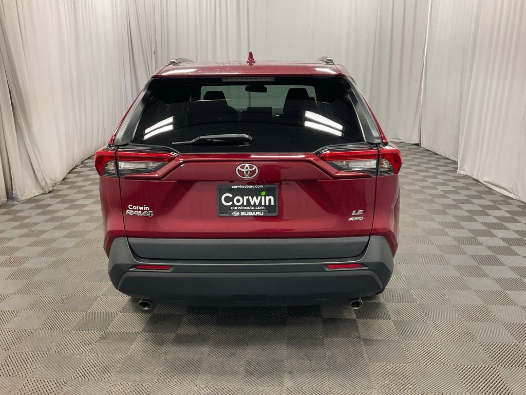 The exterior of this RAV4 LE is adorned in a stunning Red color, adding a touch of sophistication and style to its sleek, modern design. The vehicle's comprehensive list of standard features includes 17" Steel Wheels, Rear Window Wiper, Roof Rack Rails, and a Spoiler, ensuring both form and function.